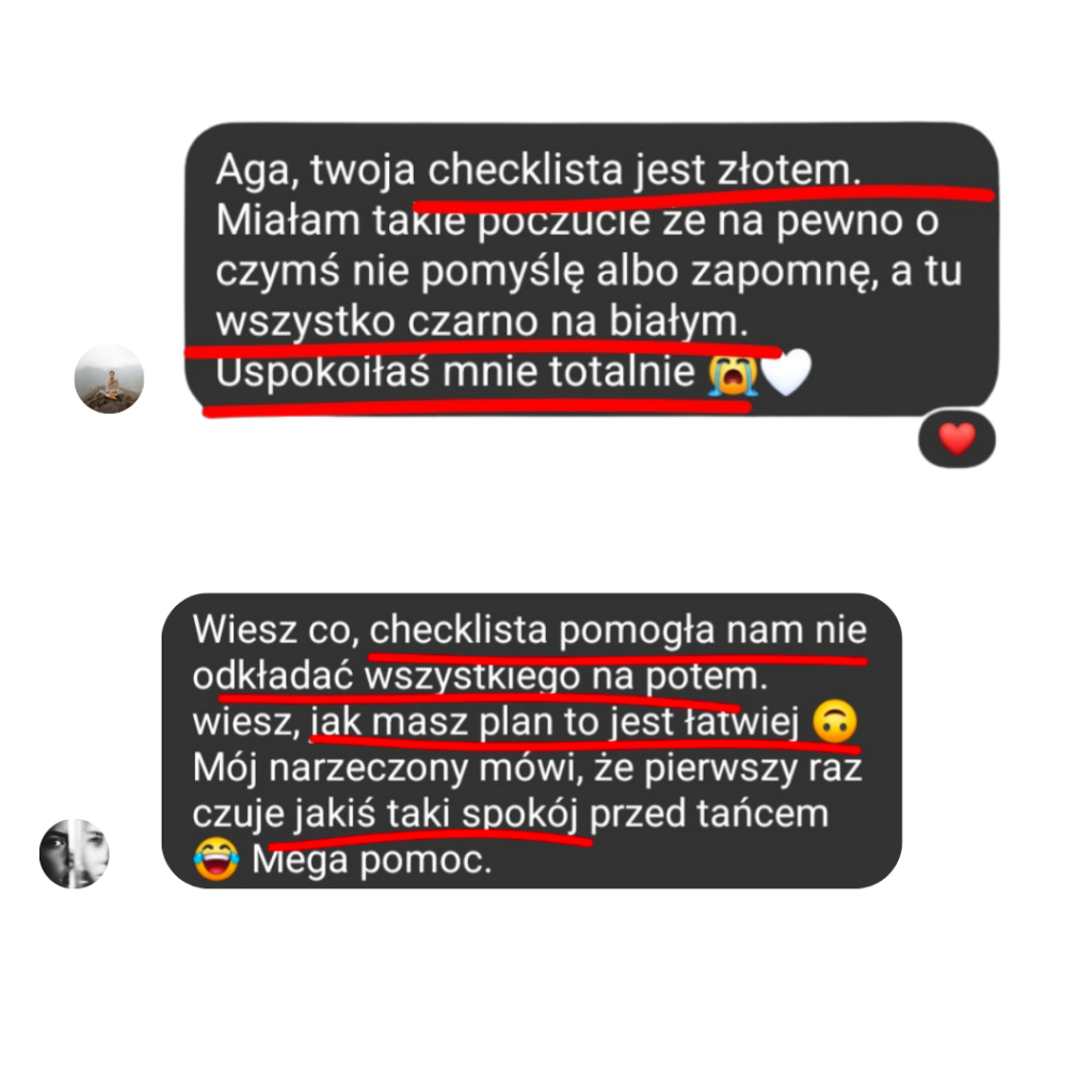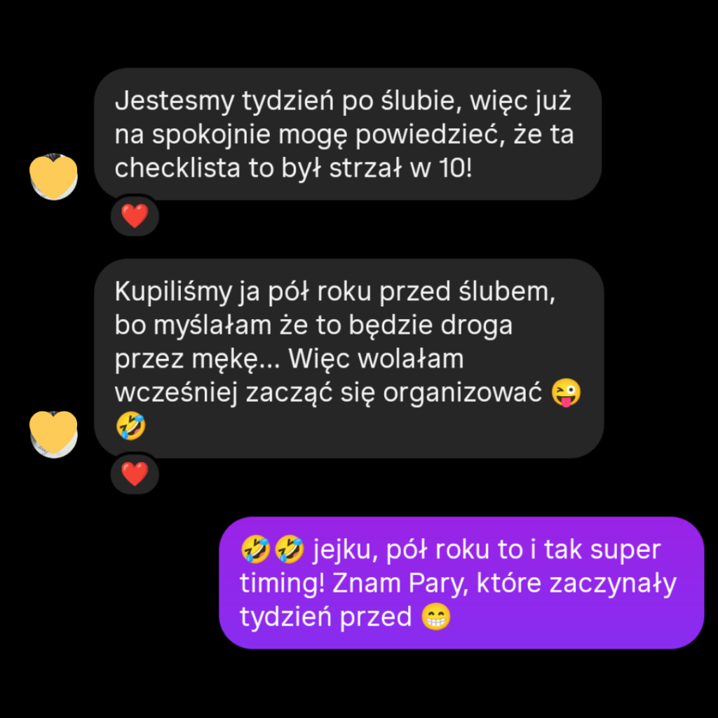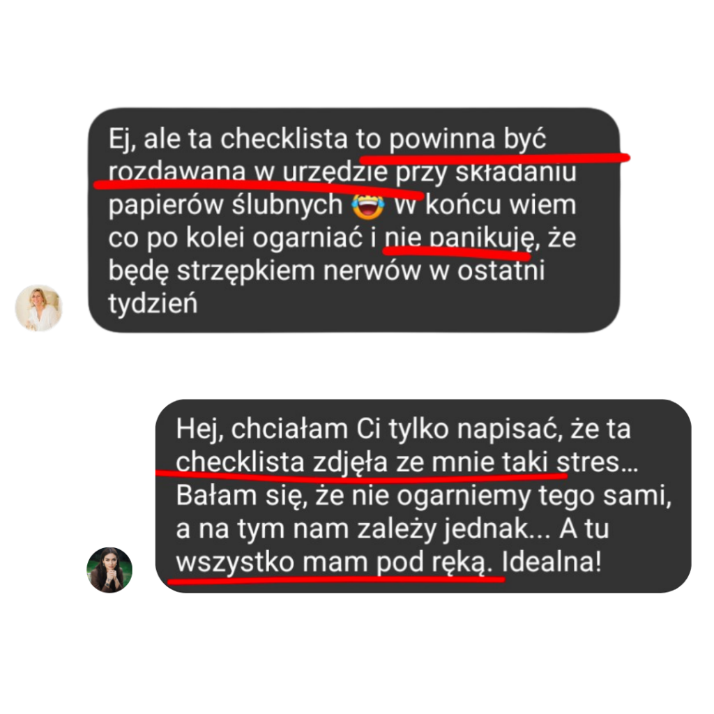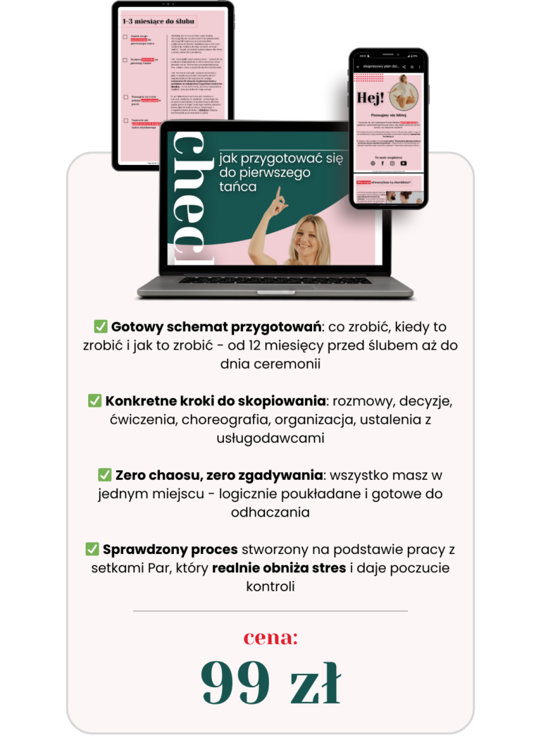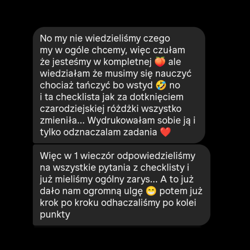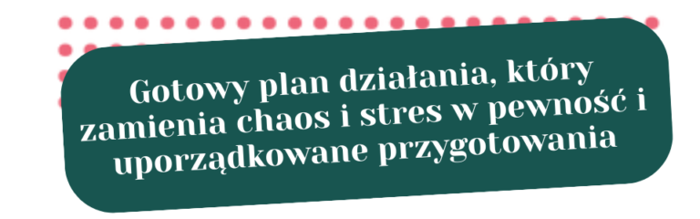 Dostajesz przejrzystą mapę z praktycznymi wskazówkami i podpowiedziami, dzięki którym wiesz co robić, nie gubisz się i czujesz pełną kontrolę nad przygotowaniami
